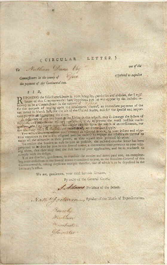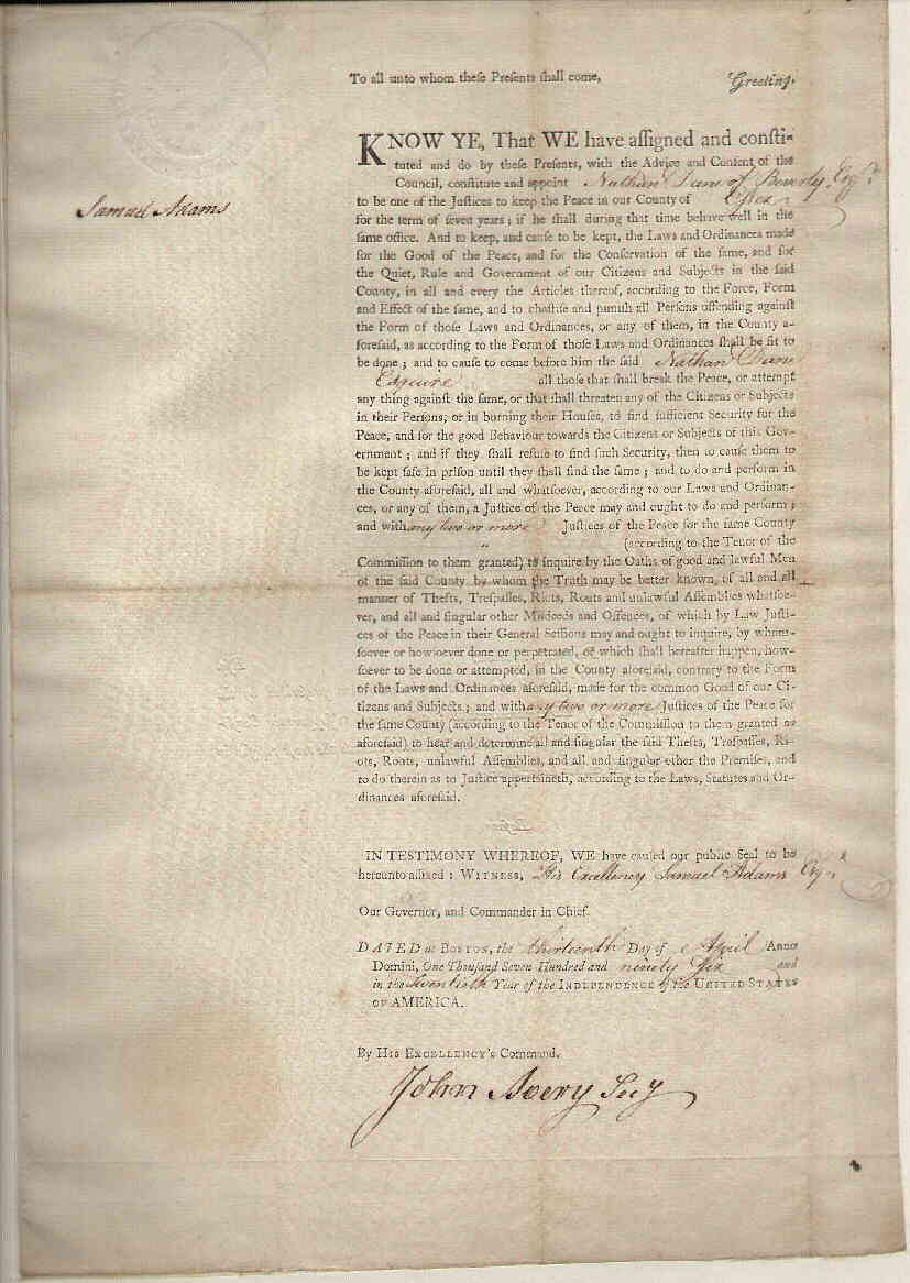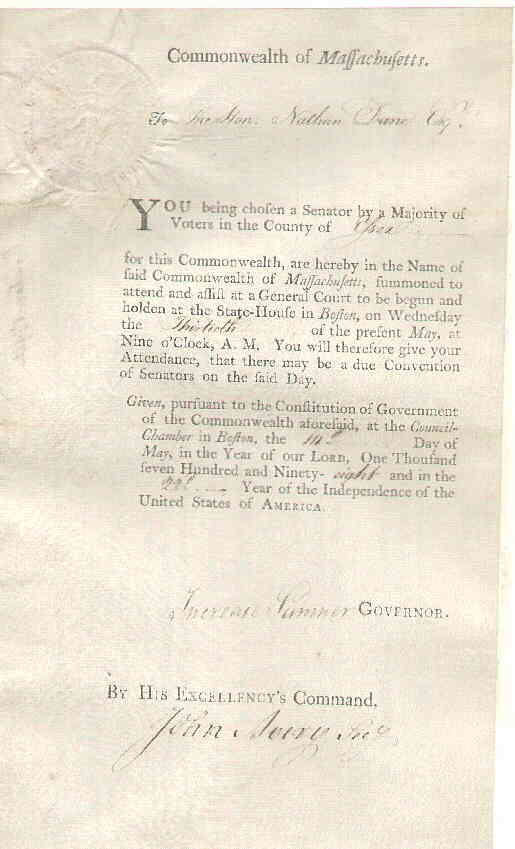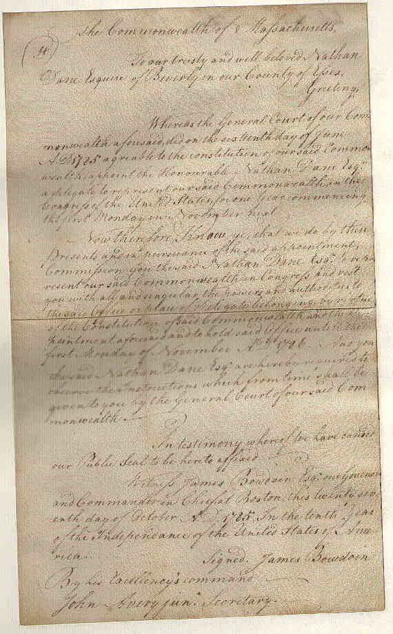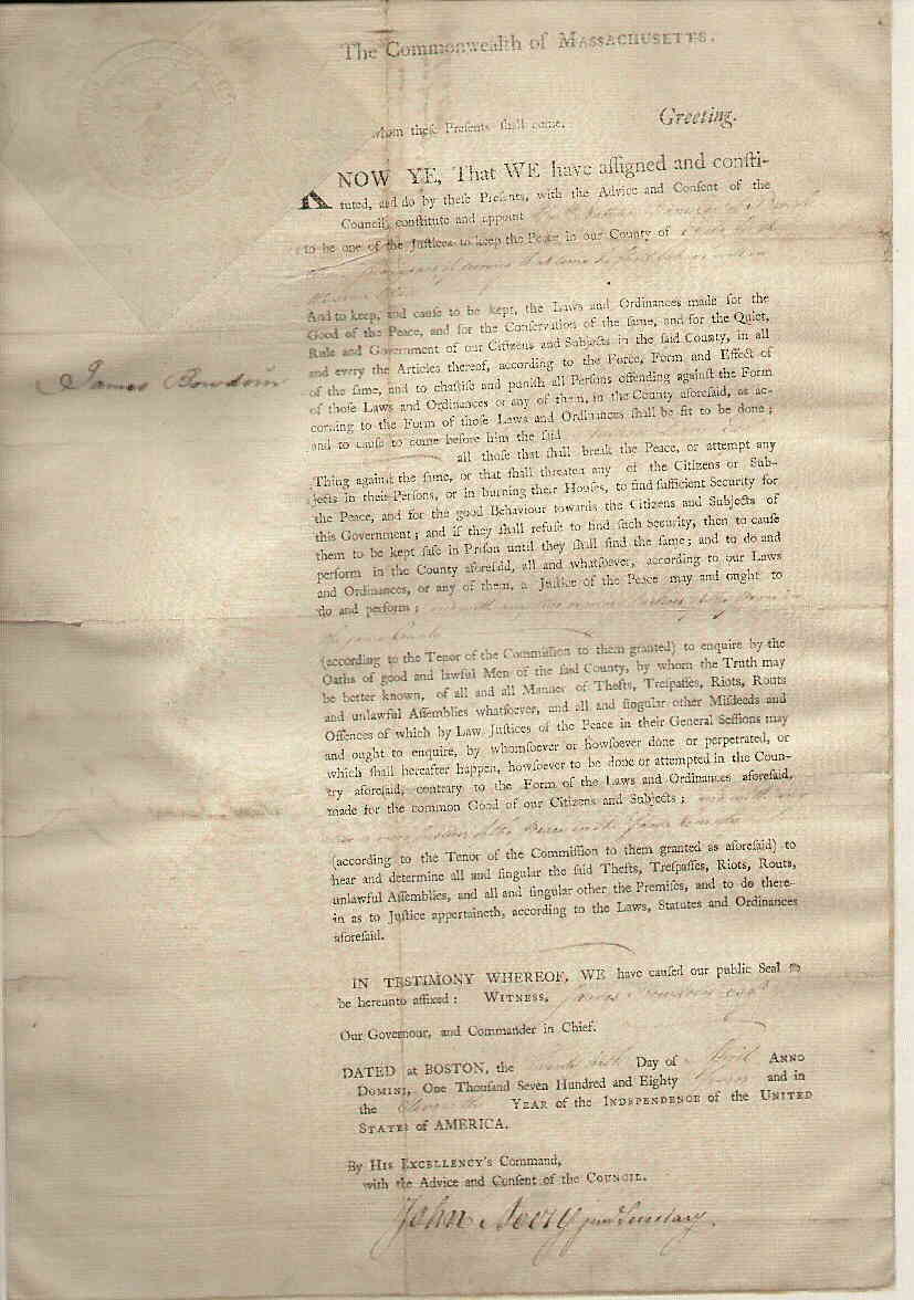 of Massachusetts, signed by James Bowdoin |