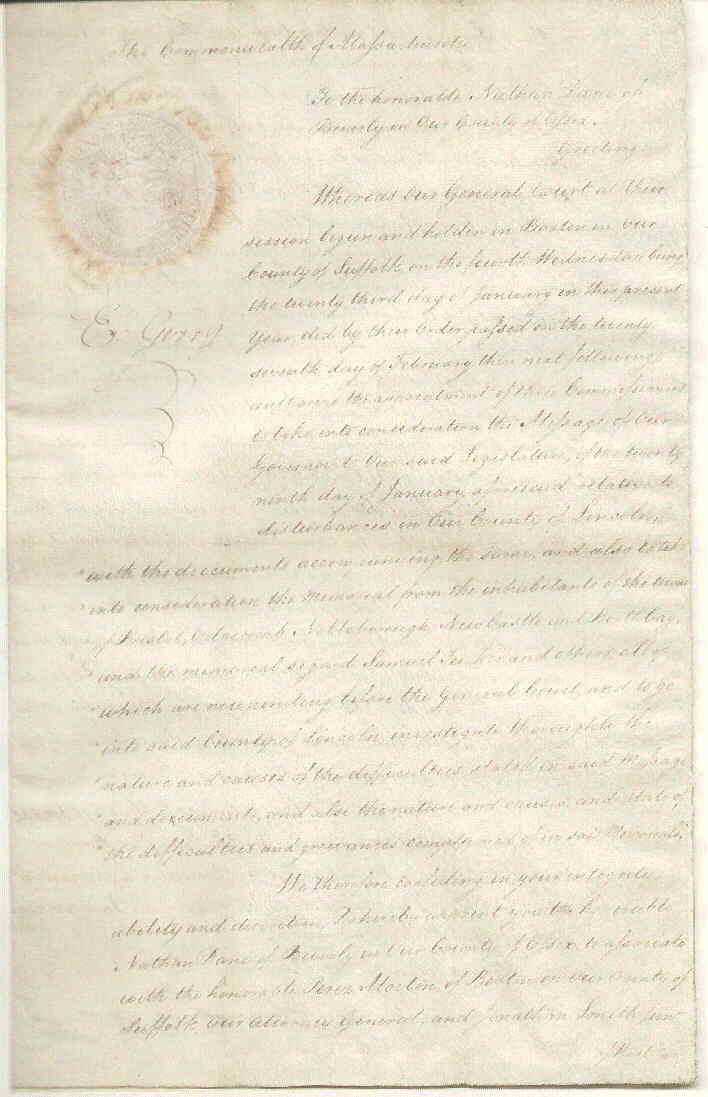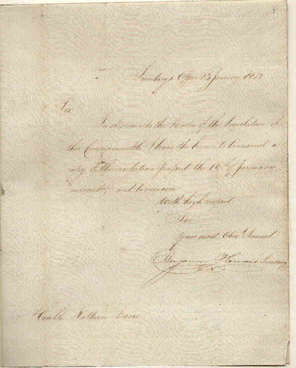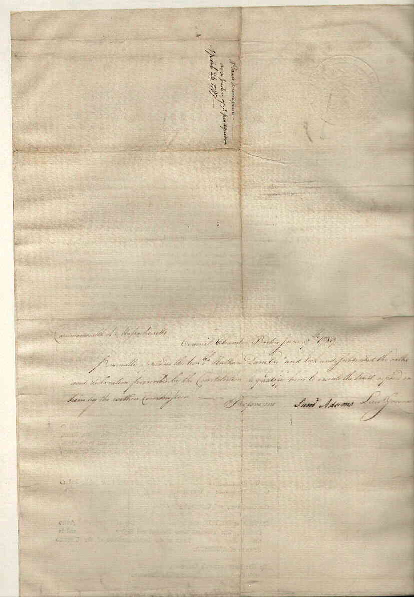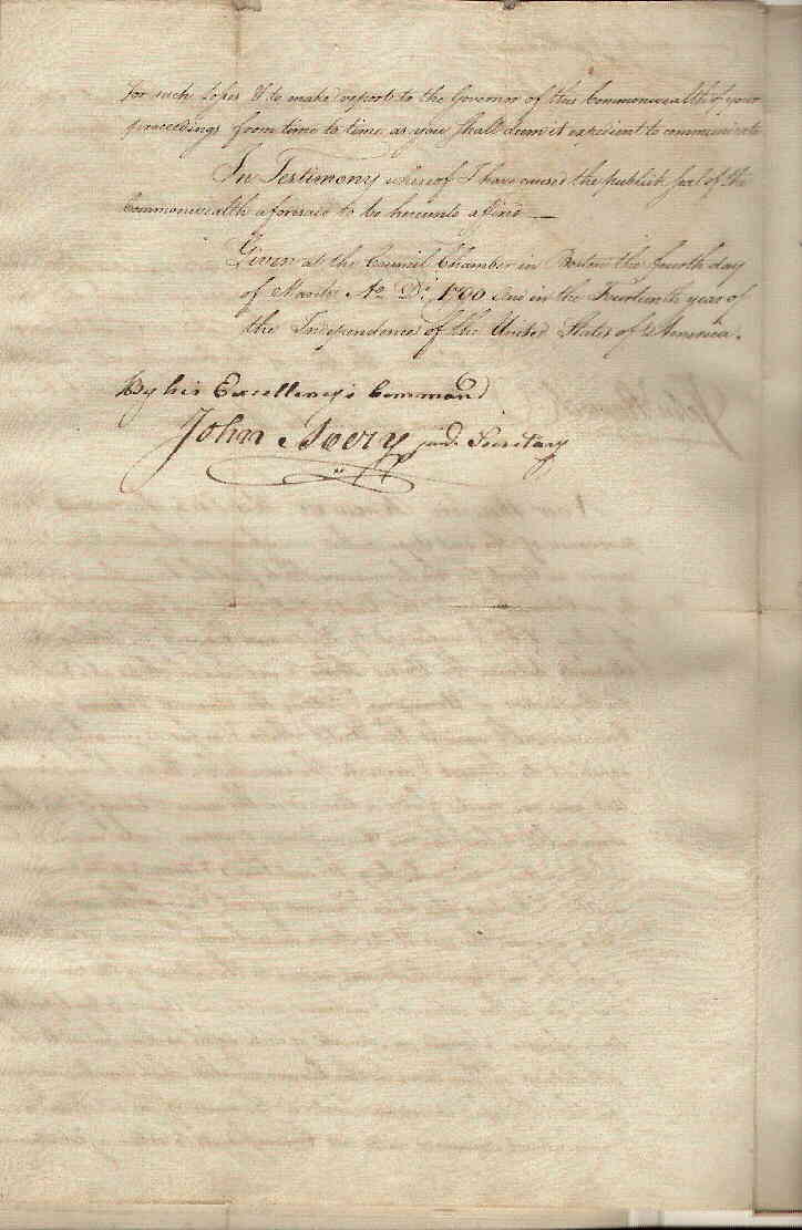 Commonwealth of Massachusetts. Secretary's Office. Boston. | John Avery, Secretary | January 21, 1790 | Transcription | |