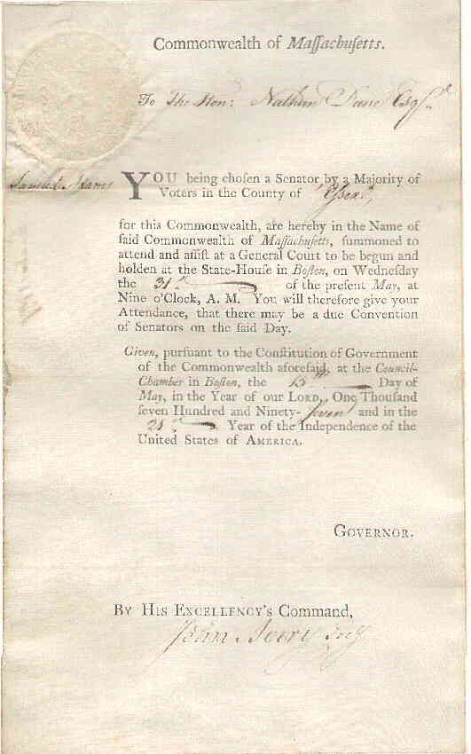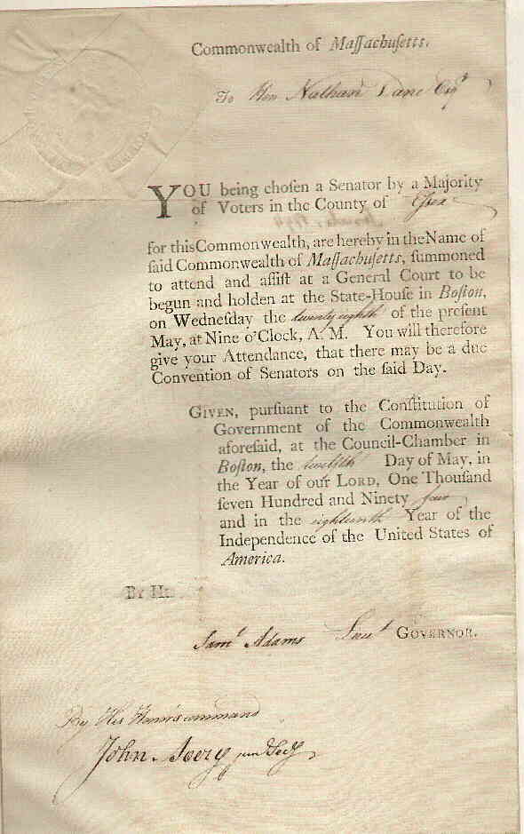 Senator of Massachusetts summoned for convention of all Senators |