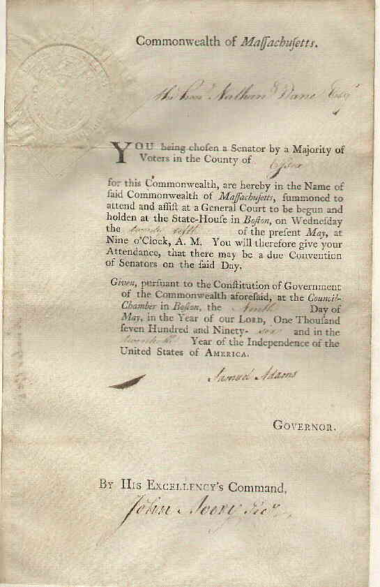 appointed to the Senate by Samuel Adams |
