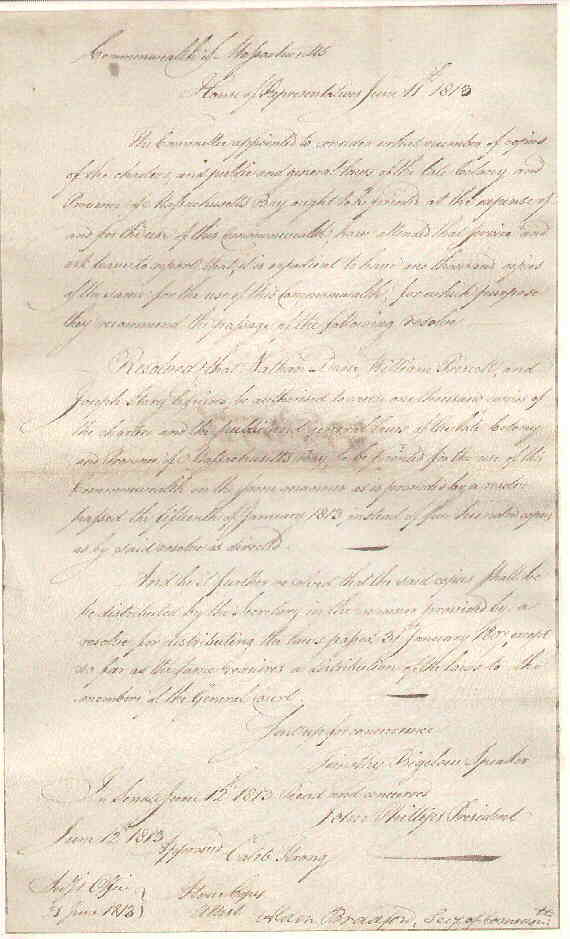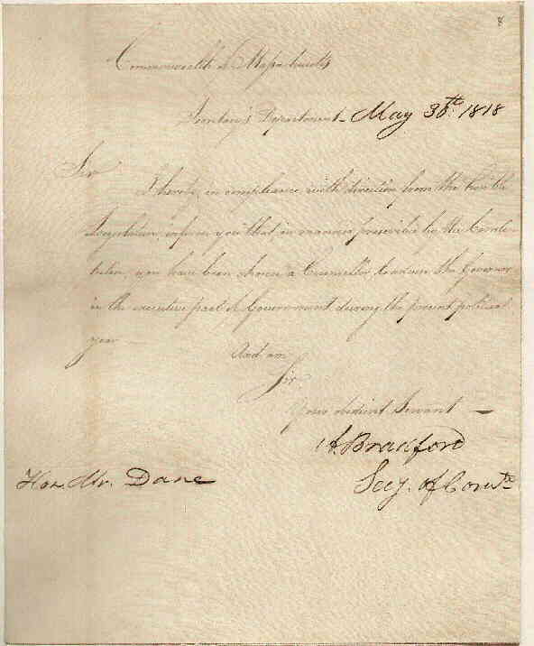 Commonwealth of Massachusetts. Secretary's Department | A. Bradford | May 30, 1818 | Transcription | |