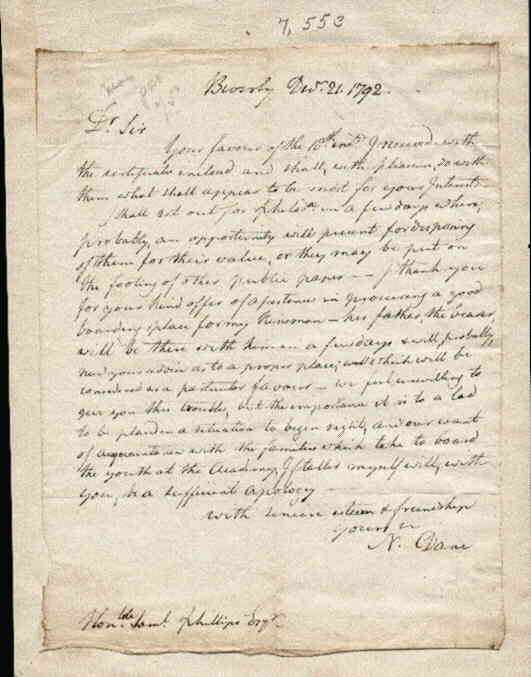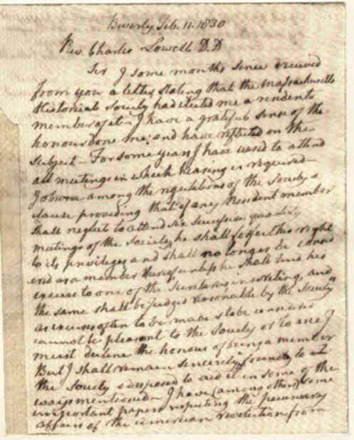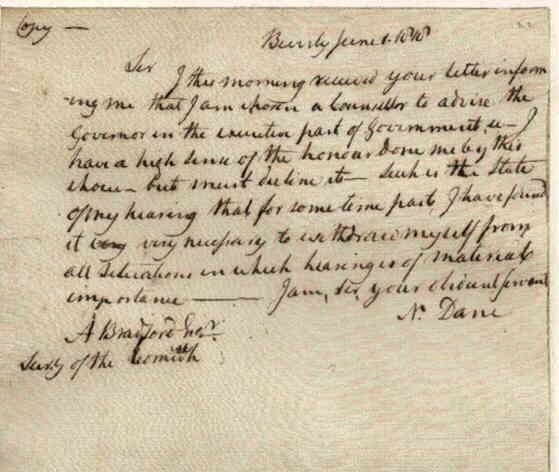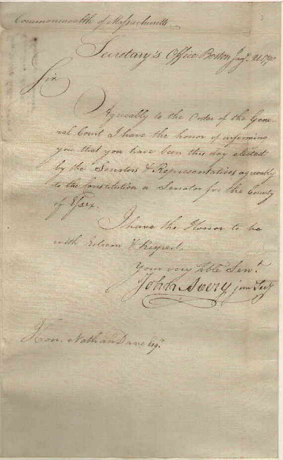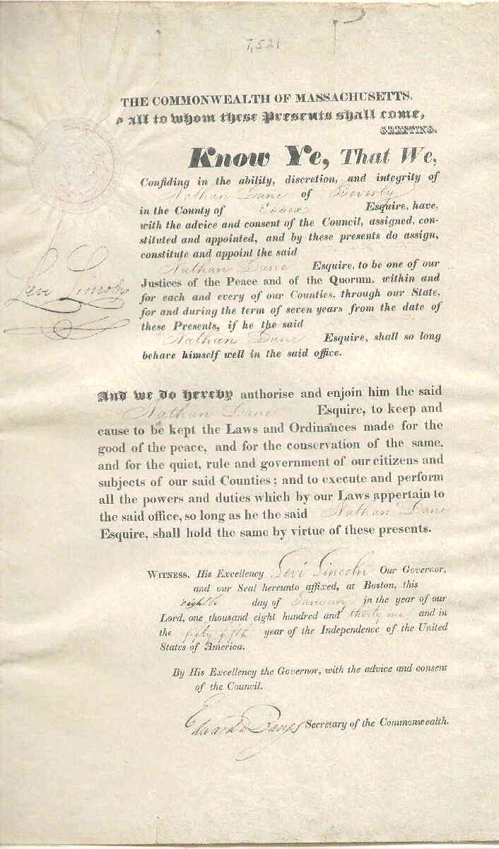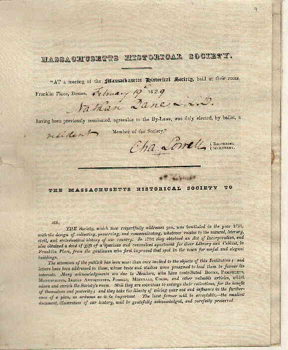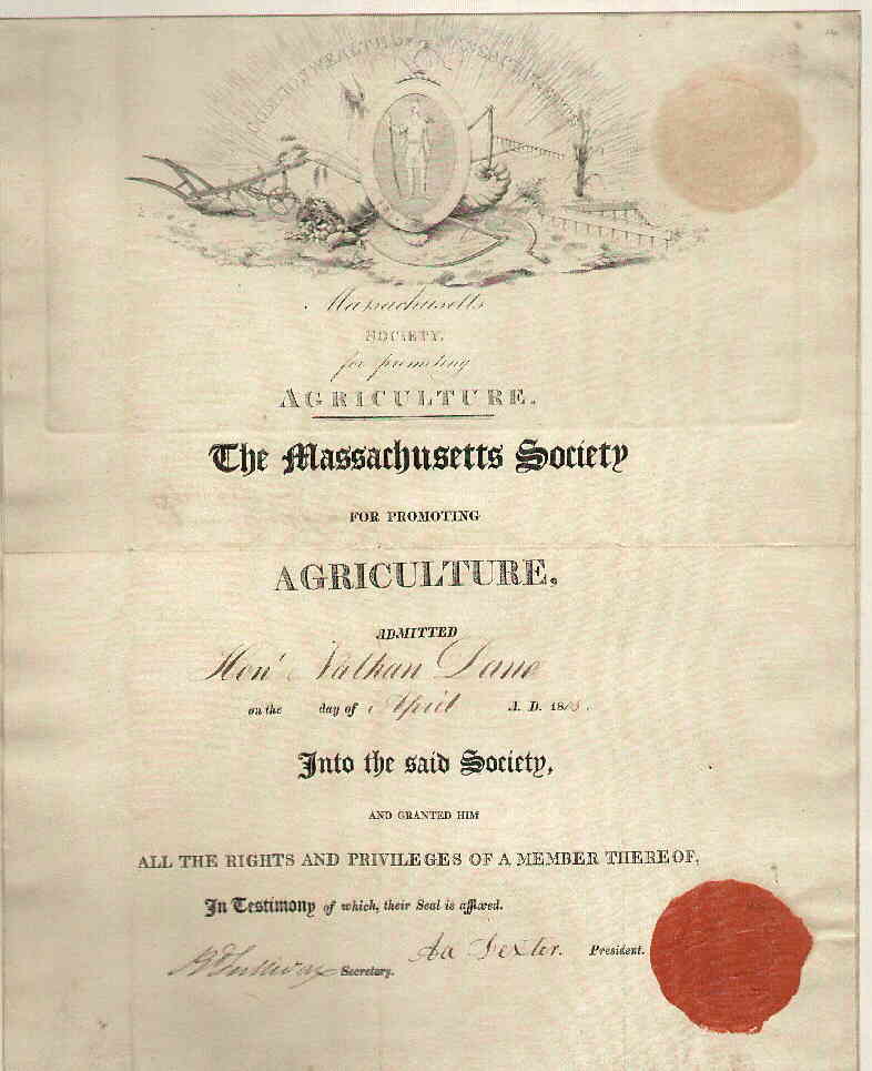 Massachusetts Historical Society for Promoting Agriculture | A. Sexton | Dane accepted as a member of the society | ||