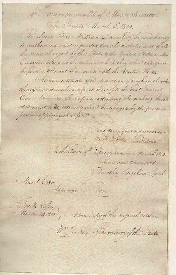 Commonwealth of Massachusets. Senate. | E. Gore | March 5, 1810 | Transcription | |