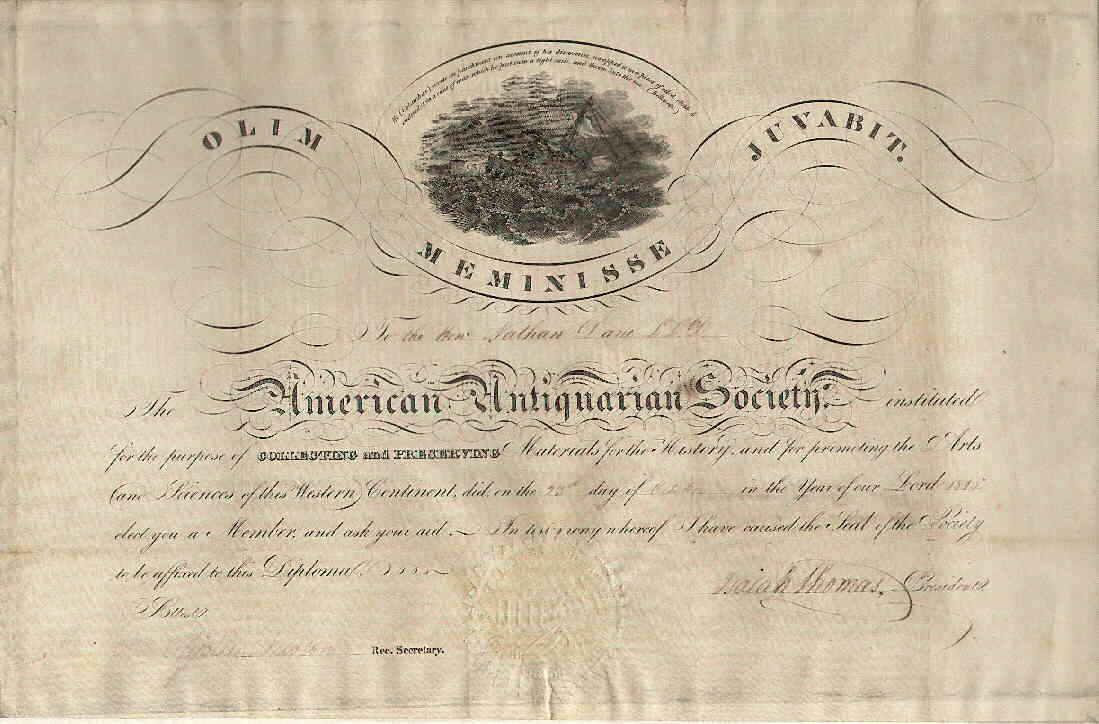American Antiquarian Society | Isaiah Thomas, President | October 23, 1815 | ||
