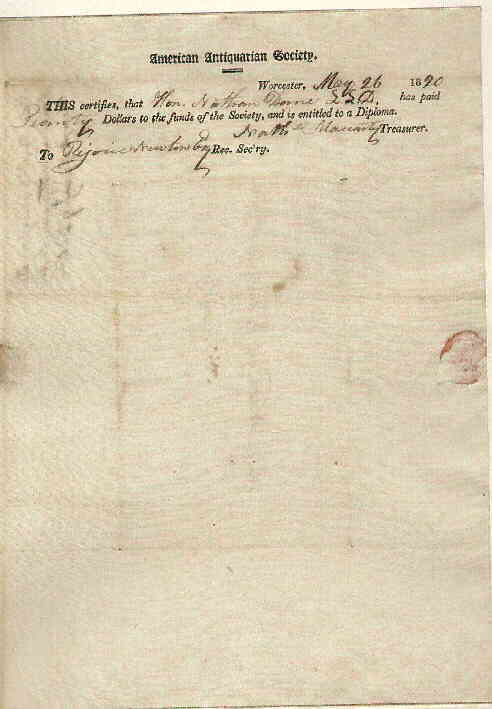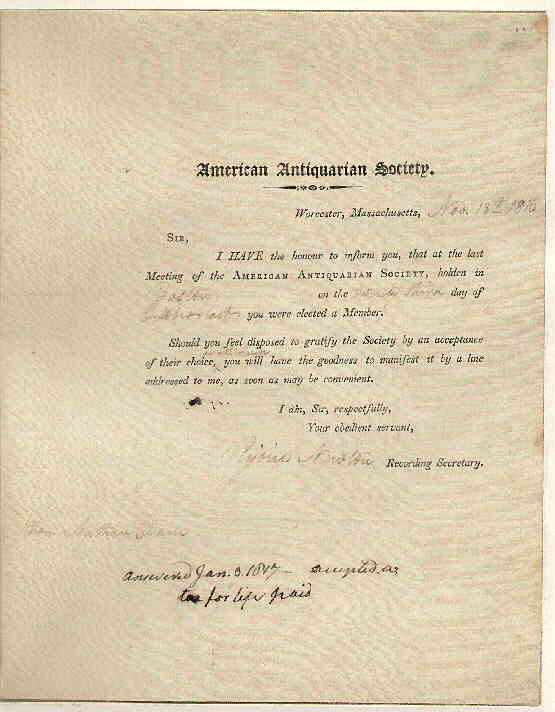 American Antiquarian Society | Rejove Newton, Secretary | |||